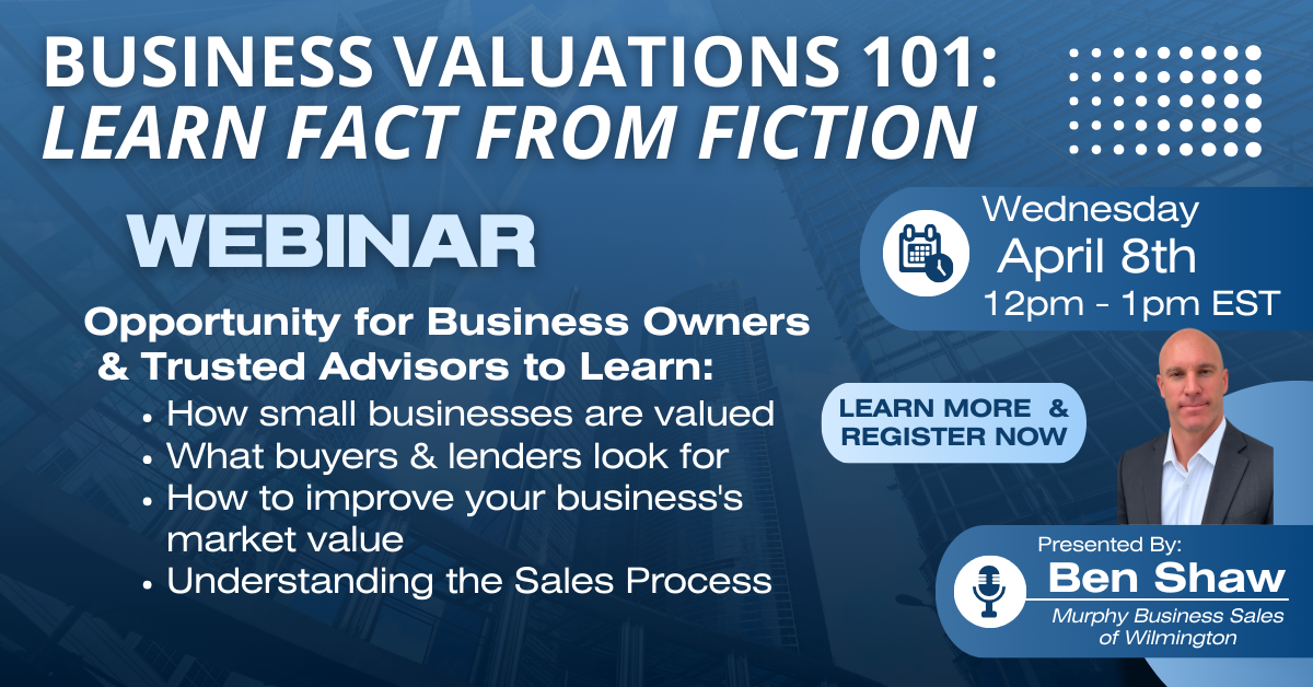 Ben Shaw of Murphy Business Sales of Wilmington will walk through how small businesses are actually valued and what buyers look for during an acquisition.